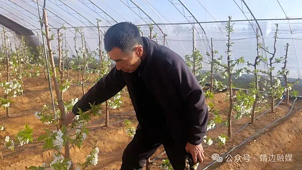 隆冬时节,黄土高原寒风凛冽,而陕西省榆林市靖边县的智能樱桃大棚里,却花团锦簇、暖意融融。12月14日,走进种植户鲍立军的樱桃大棚,繁茂的樱桃花竞相绽放,一簇簇白里透粉的花朵挂满枝头,阵阵清香扑鼻而来。鲍立军正小心翼翼地给花穗疏蕾,指尖翻飞间满是对丰收的期盼。