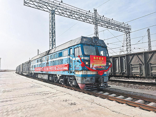 十一月二十六日上午,在靖边陆港试验示范区华业开泰集运站,满载三千吨陕北优质玉米的专列首发。