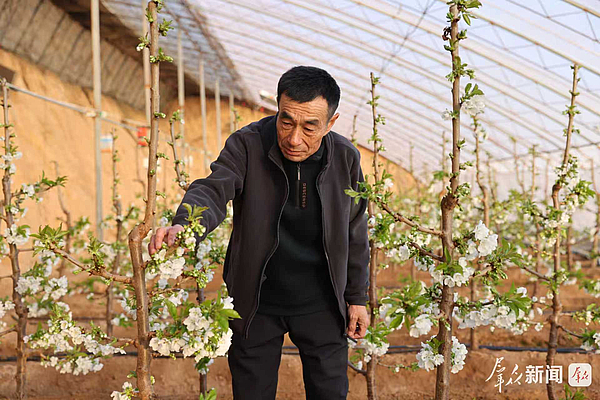 大雪节气过后,陕北大地寒意渐浓,东坑镇陆家山村的温室大棚内却暖意融融。12月14日,种植户鲍立军正忙着为樱桃授粉做前期准备,这批试种18个月的樱桃新品种花开正艳,接下来几天,他就要开始人工授粉,为来年正月十五前后上市做足准备。