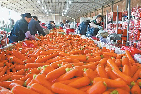 龙洲镇村民既得土地流转租金,又能在附近加工厂务工获稳定工资;宁条梁镇返乡青年创办的食品公司,开发出胡萝卜脆片、NFC胡萝卜汁等深加工产品,让萝卜价值翻数倍,年产值达数千万元。